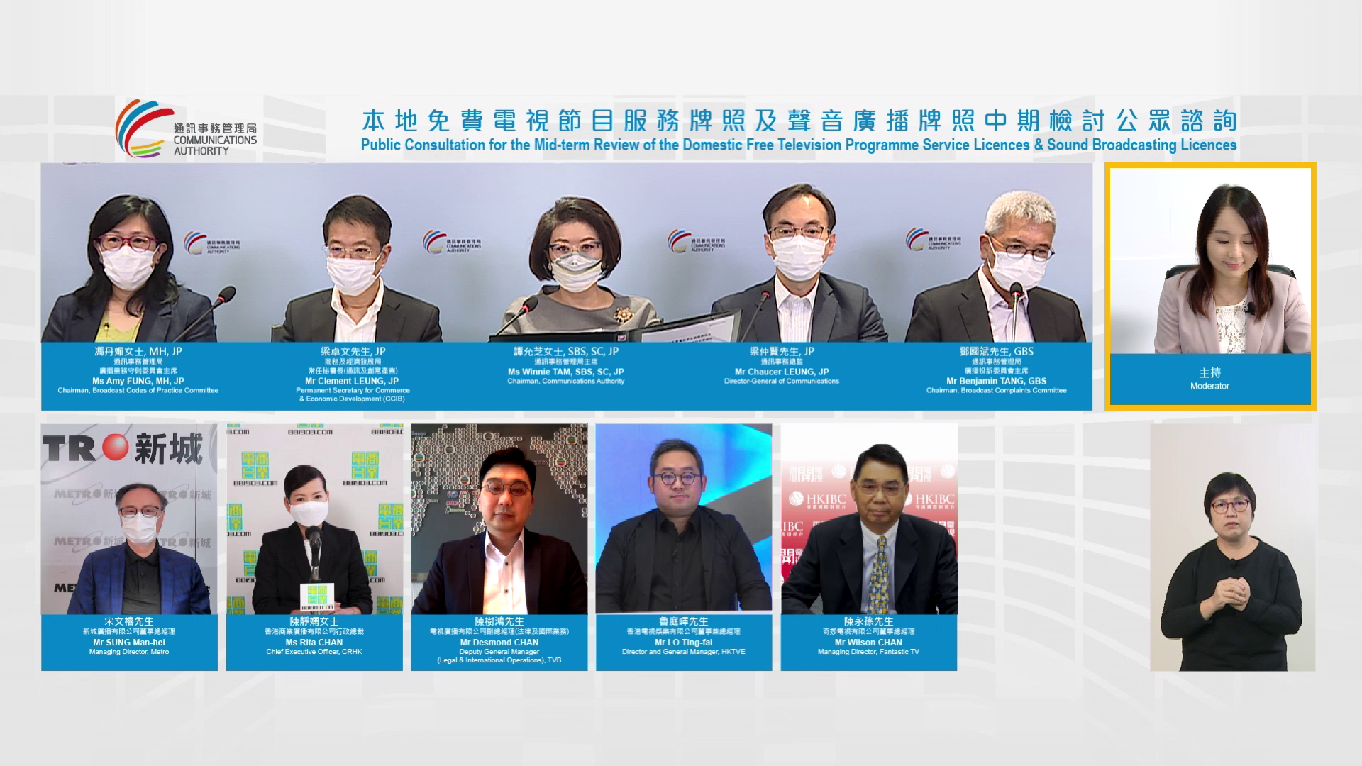 于二零二一年九月二十五日就本地免费电视节目服务牌照及声音广播牌照中期检讨举行的网上公众谘询会。